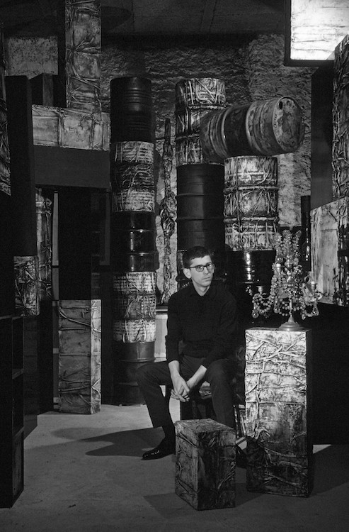 Christo in his storeroom in the basement of Jeanne-Claude’s apartment at 4, avenue Raymond Poincaré. Paris, 1960. © Christo and Jeanne-Claude Foundation - Photo: René Bertholo. Courtesy Christo and Jeanne-Claude Foundation and Gagosian