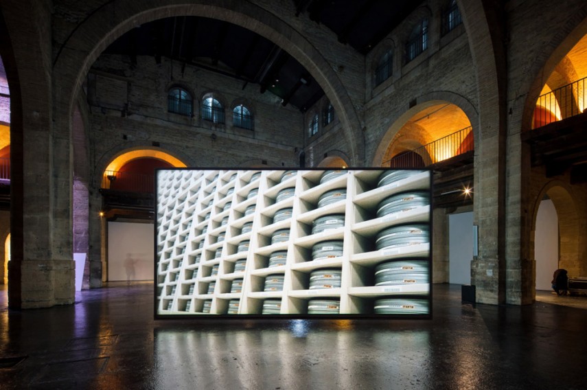 HD video (color, sound), 5 colored glass filters, steel base table. Installation dimensions variable. Video duration: 36 min
