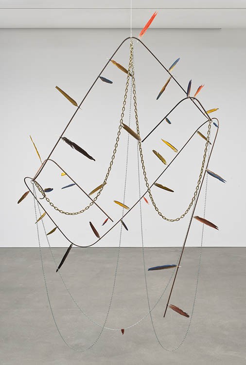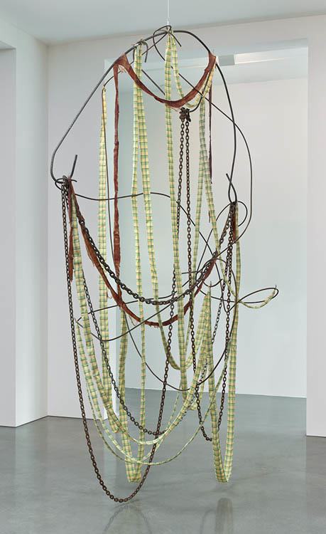 Rebar, fabric, chain, feathers and meat