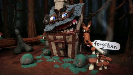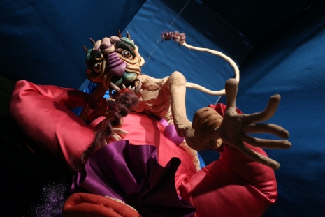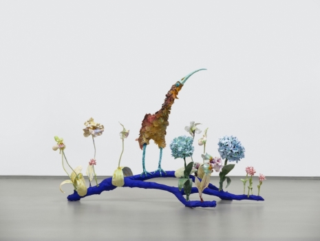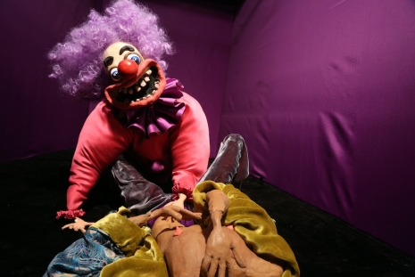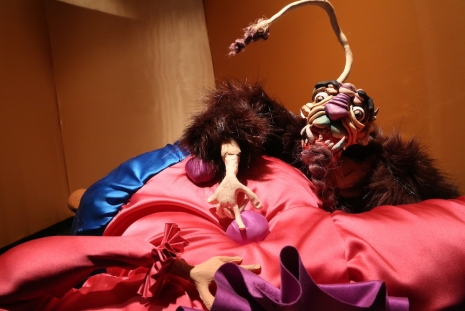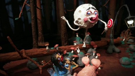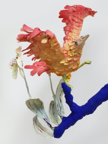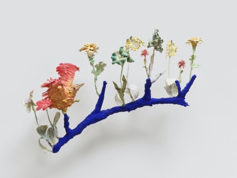 Wood, fabric, grout, polymer clay, acrylic paint, resin, wire