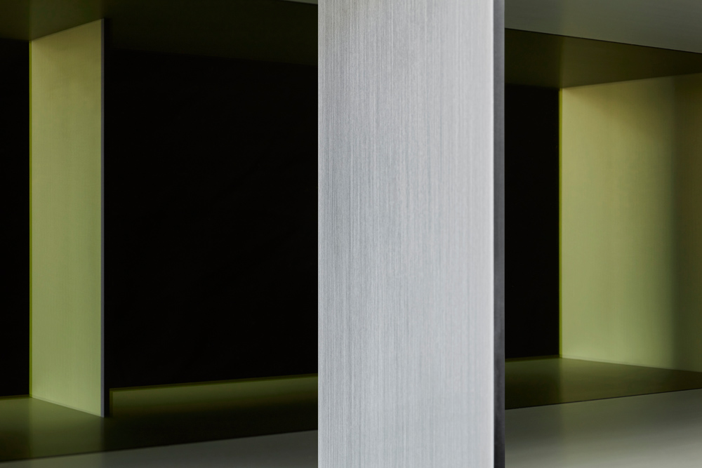 Clear anodized aluminium with transparent green over black acrylic sheets